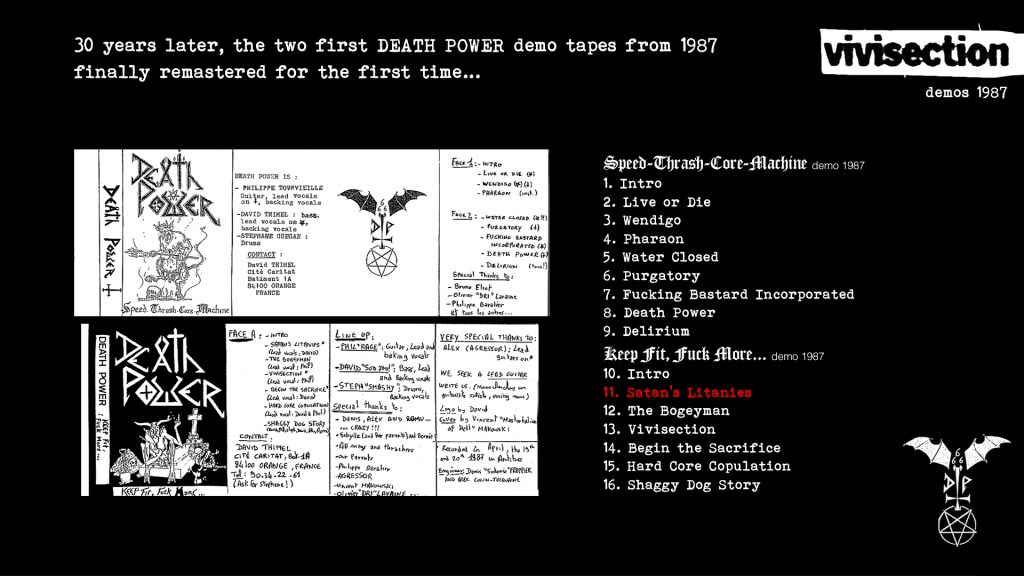 « Vivisection – demos 1987 » (2017) CD boitier crystal + livret 12 pages. J’ai également effectué le remastering de l’intégralité des enregistrements audio :