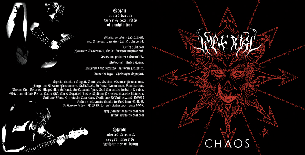 « Chaos » (2014), CD digipack avec plaque transparente, livret 12 pages insérable dans le volet. Illustrations par mon frère André Reina . J’ai également effectué le mixage audio de l’album :