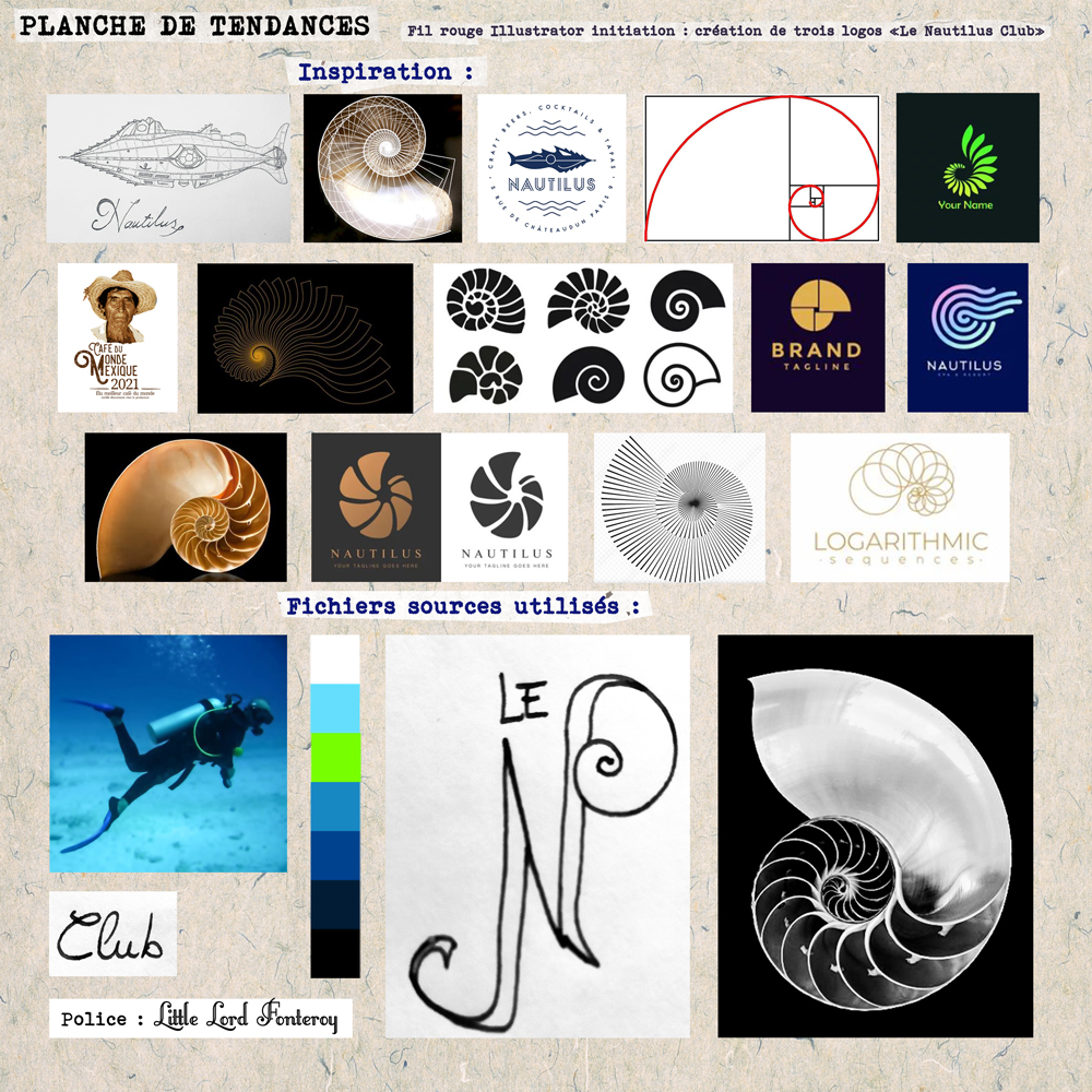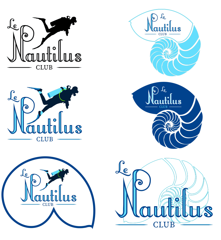 Vous devez réaliser 3 variantes/types de logos (monogramme, mascotte, blason) pour un club de plongée qui s’appelle « Le Nautilus club ».