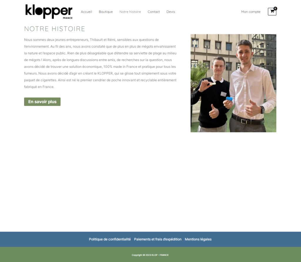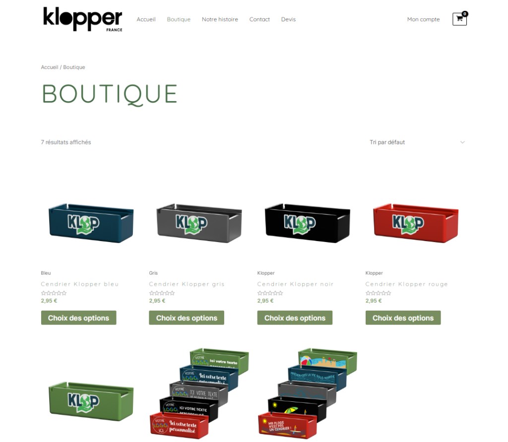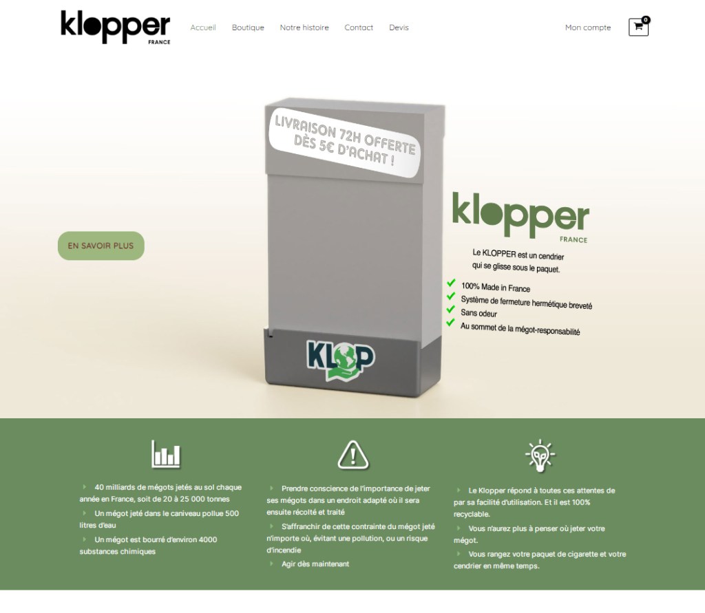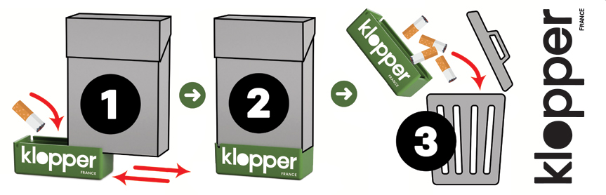 Dans le cadre de ma formation d’Infographiste Metteur en Page chez Doranco, j’ai effectué 280 heures de stage en entreprise, pour la société Klop France à Nice. Klop-France est l’entreprise qui a inventé le KLOPPER, un cendrier écologique de poche 100% recyclable, qui se glisse sous le paquet de cigarette. Voici donc les principaux travaux qui m’ont été demandés.