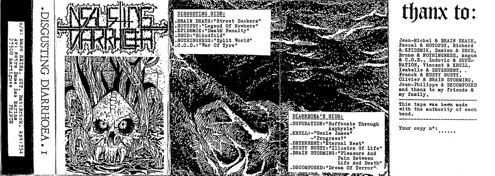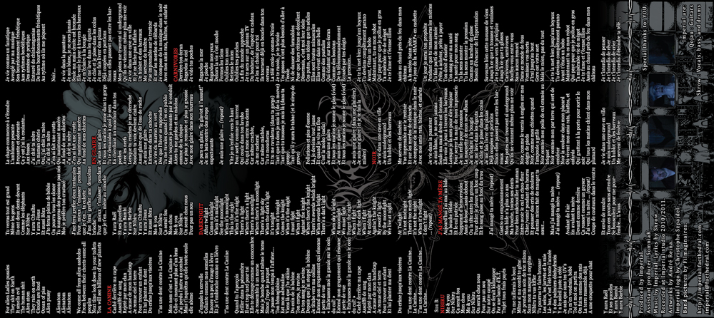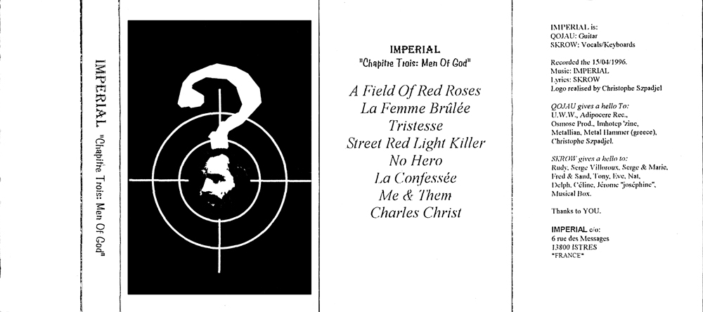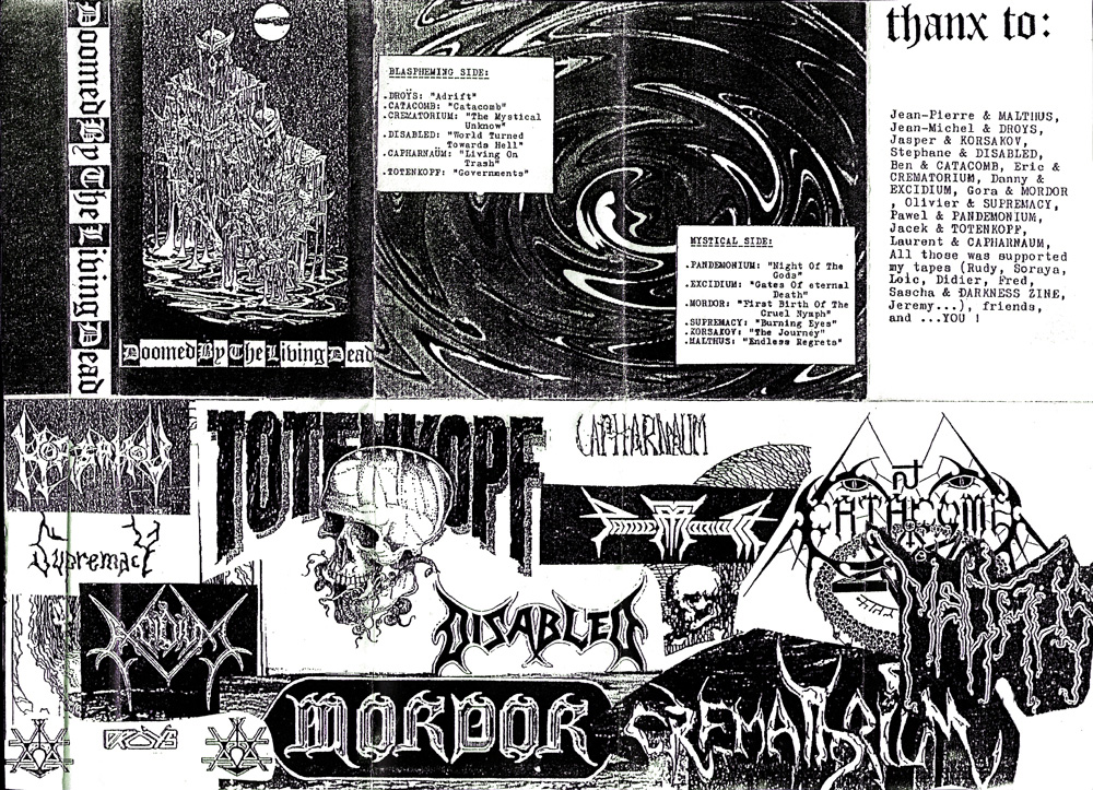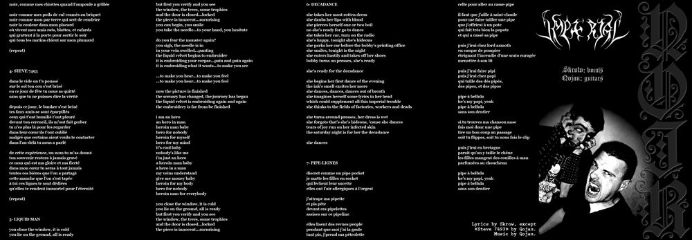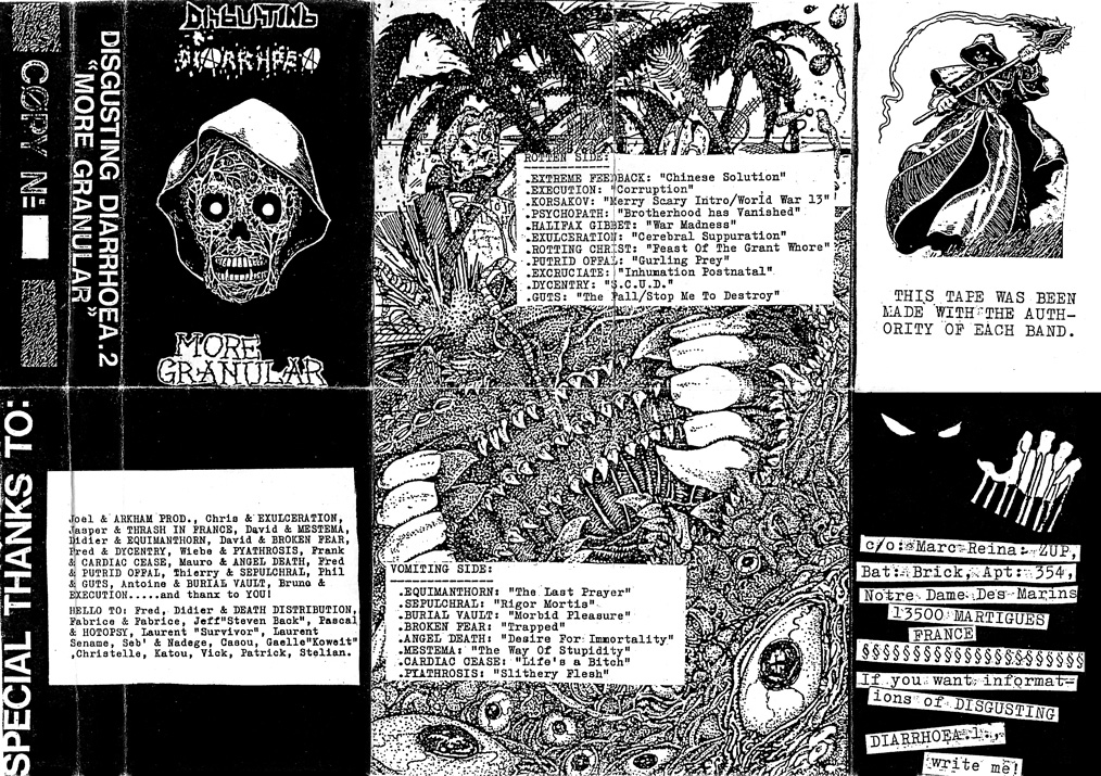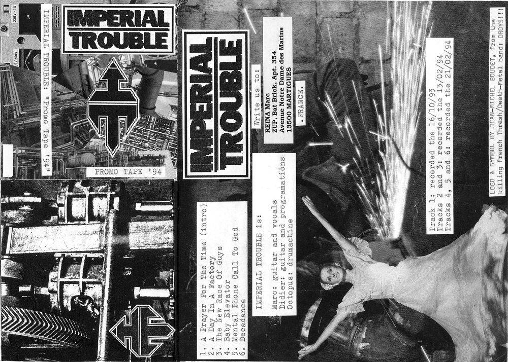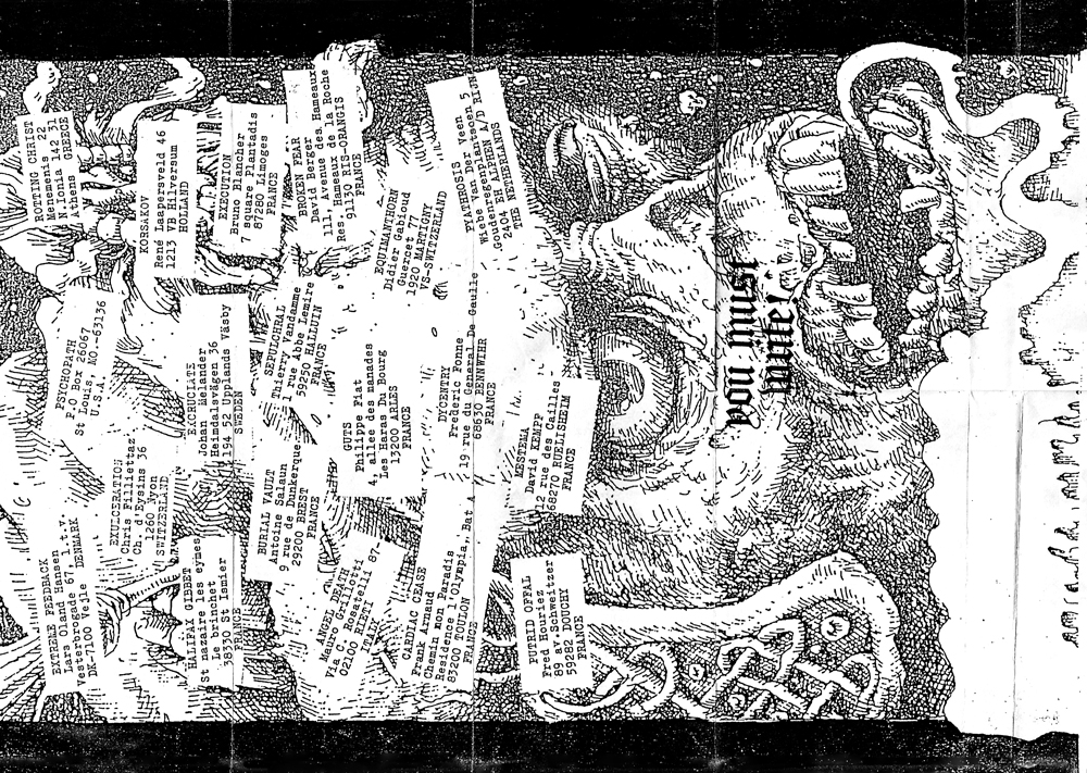 Sauf précisé, l’essentiel des jaquettes furent réalisées à la main dans les années 90, avec comme seuls outils : feutre noir, papier, ciseaux, magazines, lettrines décalcomanies, colle, machine à écrire, tipex, règle, cutter, photocopieuse noir et blanc.